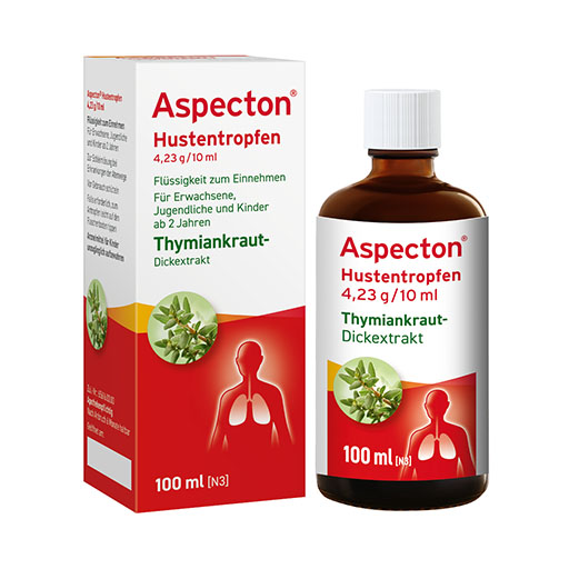 Aspecton® Hustentropfen sind ein wirksamer Hustenlöser. Die Tropfen enthalten jeweils einen hochkonzentrierten Extrakt aus Thymiankraut. Sie lösen zähen Schleim und erleichtern damit das Abhusten, lindern schmerzhafte Verkrampfungen der Bronchialmuskulatur und hemmen das Wachstum von Bakterien. Der Hustenreiz wird gelindert. Daher sind Aspecton® Hustentropfen besonders dann empfehlenswert, wenn ein Husten mit starker Schleimbildung und/oder krampfartigen Hustenanfällen einhergeht.