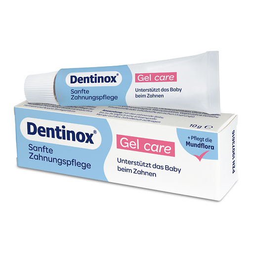 Dentinox® Gel care kann bis zu 3x täglich in erbsengroßer Menge auf das Zahnfleisch des zahnenden Babys aufgetragen werden. Dies pflegt und unterstützt die Mundflora und hilft dem Baby bei leichten Zahnungsbeschwerden.