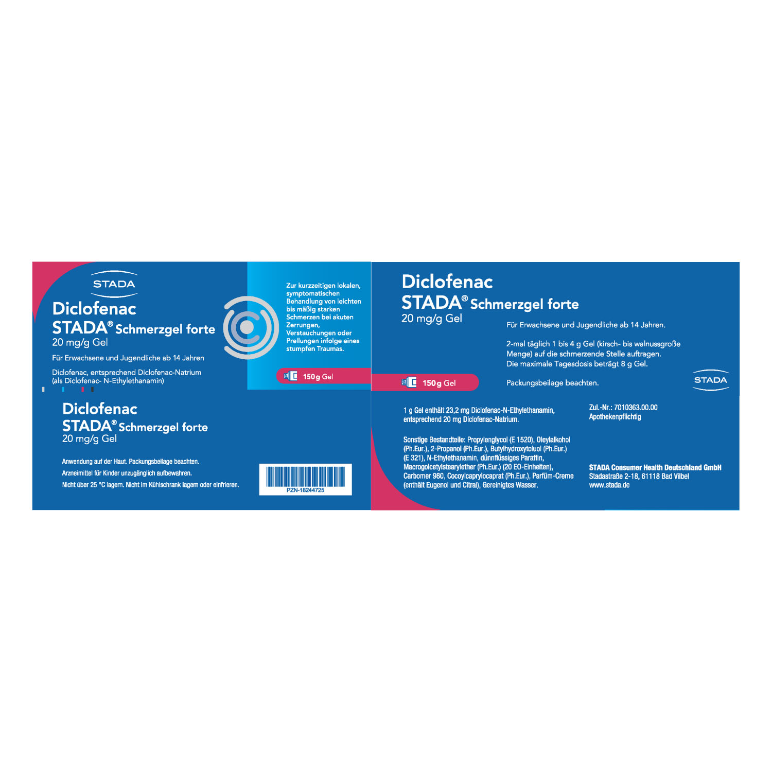 Die Dauer der Anwendung richtet sich nach den Symptomen und der zugrunde liegenden Erkrankung. Diclofenac STADA® forte sollte ohne ärztlichen Rat nicht länger als 7 Tage angewendet werden. Suchen Sie einen Arzt auf, wenn sich die Beschwerden verschlimmern oder sich nach 3–5 Tagen nicht gebessert haben.