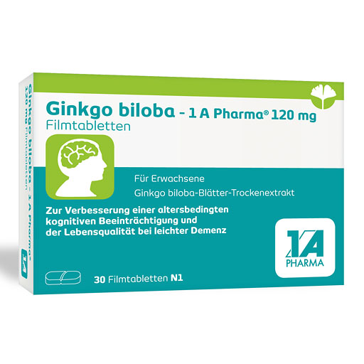 Gut zu wissen: Ginkgo biloba – 1 A Pharma® 120 mg Filmtabletten gibt es auch höher dosiert als Ginkgo – 1 A Pharma® 240 mg Filmtabletten.