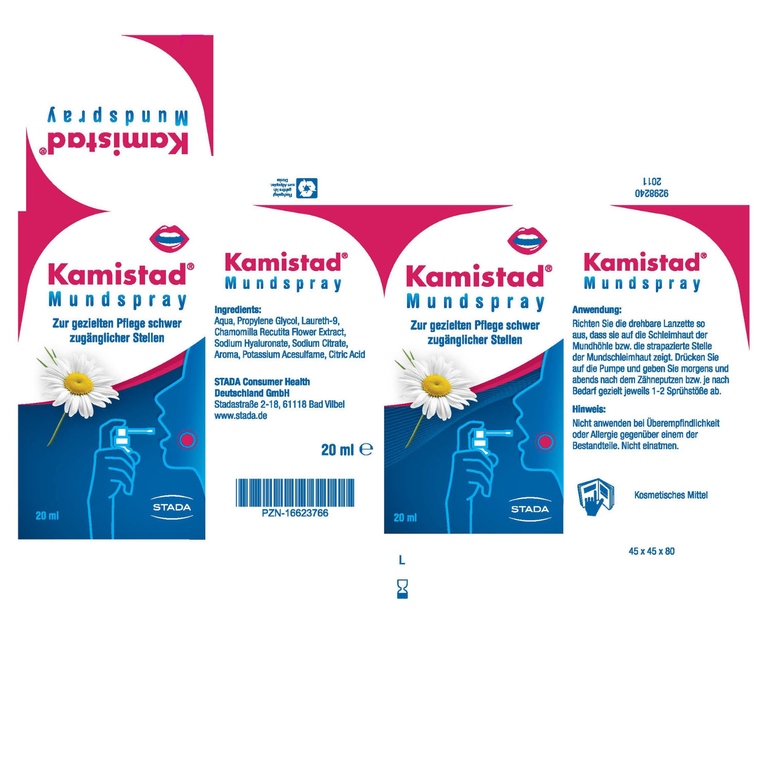 Kamistad Mundspray dient zur kamillensanften Pflege der Mundschleimhaut und des Zahnfleisches. Das Mundspray erleichtert durch seine drehbare Lanzette die gezielte Pflege schwer zugänglicher Stellen der Schleimhäute und Mundhöhle.