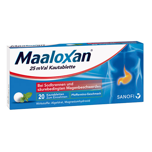 Der brennende Schmerz steigt vom Bauchraum hinter dem Brustbein entlang hinauf in den Hals – Sodbrennen kündigt sich an! Millionen von Menschen leiden darunter. Wenn auch Sie häufiger von Sodbrennen geplagt sind, ist Maaloxan® 25 mVal Kautablette eine praktische Akuthilfe. Es lindert den Schmerz, schützt den Magen und ist gut verträglich.