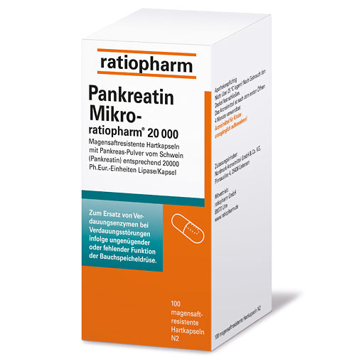 Pankreatin Mikro-ratiopharm 20 000 magensaftresistente Hartkapseln Wirkstoff: Pankreatin. Anwendungsgebiete: Störungen der exokrinen Bauchspeicheldrüsenfunktion, die mit einer Verdauungsschwäche einhergehen.