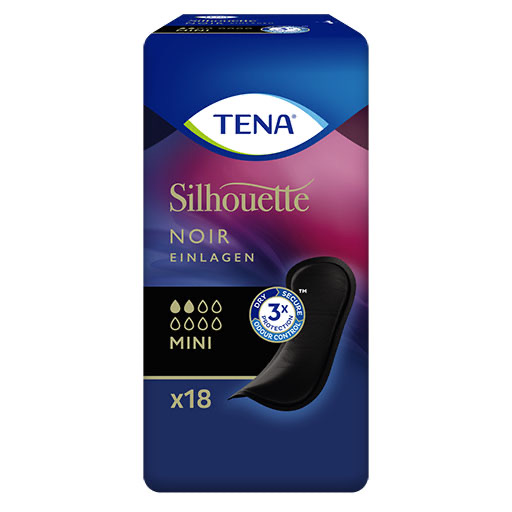 TENA® Silhouette Einlagen Mini Noir sind für jede Frau mit leichter Blasenschwäche geeignet und bieten höchste Diskretion.