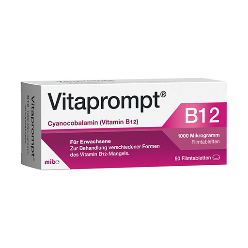 Bei Vitaprompt® handelt es sich um Filmtabletten, die Vitamin B12 als Cyanocobalamin enthalten. Diese synthetische Form des Vitamins wandelt der Körper in aktives Vitamin B12 um. Vitaprompt® kommt für Erwachsene in Frage, bei denen ein Vitamin-B12-Mangel aufgrund von Fehlernährung vorliegt. Es kann auch zur Langzeitbehandlung eines Vitamin-B12-Mangels eingesetzt werden, zum Beispiel bei Problemen mit der Aufnahme von Nahrungsbestandteilen aus dem Darm (Malabsorption). Auch die Behandlung der perniziösen Anämie sowie eines Vitamin- B12-Mangels mit Symptomen, die das Nervensystem betreffen, ist möglich, sofern die Vitamin- B12-Konzentration durch andere Behandlungsoptionen bereits normalisiert wurde.